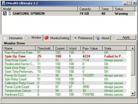 DHealth is a utility that monitors your disk hardware with the goal of identifying disks that have a strong possibility if crashing. DHealth Ultimate will provide you a window of opportunity to gracefully remove data from a failing disk and take it off-line Before your disk drive takes you off-line.